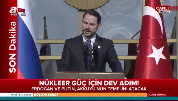 Akkuyu Nükleer Santrali'nin temel atma töreninde konuşan Bakan Albayrak, "63 yıllık rüyanın gerçekleşmesinde en önemli kavşakta duruyoruz. Bugün tarihi bir ana şahit oluyoruz." dedi.