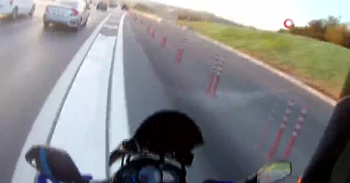 Kaza, önceki hafta Pazar günü saat 17.30 sıralarında TEM Otoyolu Eyüpsultan Güzeltepe mevkisi Edirne istikametinde meydana geldi. Edinilen bilgiye göre, motosikletiyle otoyolda seyreden sürücü, bir süre sonra emniyete şeridine girerek yoluna devam etmeye başladı. Motosikletli şeritte yoluna devam ettiği esnada sağ şeritte seyreden bir otomobil sürücüsü, aniden taralı alana girdi. Otomobilin manevrasını son anda fark eden motosiklet sürücüsü frene bastı ancak duramayarak araca arkadan çarptı. Çarpma sonucu gidon hakimiyetini kaybeden motosiklet sürücüsü, kaskıyla otomobile sert bir şekilde çarparak yere savruldu. Kaza anı ise kask kamerasına saniye saniye yansıdı.