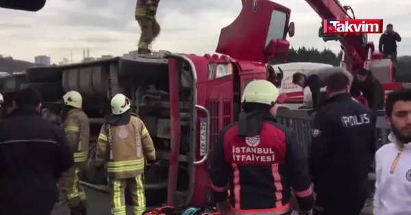 TEM Otoyolu otogar bağlantı yolunda tır devrildi. Tır sürücüsü araç içinde sıkışırken trafik kilitlendi.