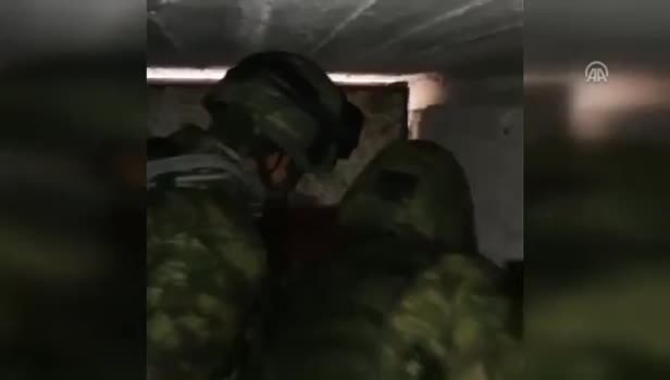 Mehmetçik'in Zeytin Dalı Harekatı kapsamında ele geçirdiği PYD/PKK'lı teröristlerce yapılan betonarme ve çukur mevziler dikkat çekti. Görüntülere, üstü kapalı yaklaşık 20 metre uzunluğundaki tüneller, nöbet noktaları ve yataklar yansıdı.