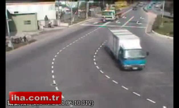 Çin'in başkenti Pekin'de meydana gelen korkunç kazada, kömür yüklü TIR önündeki motosikletliyi göremeyince ortalık kan gölüne döndü.