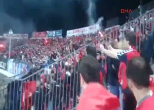 Arnavutluk ile Ermenistan arasında oynanan maçta, Arnavut asıllı taraftarların Türk bayrağı açmasının ardından, Ermeni taraftarlar çılgına döndü.