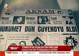 7 Haziran seçimleri öncesinde paralel medya ve Doğan medyası AK Parti'yi yıpratmak ve algı operasyonu yapmak için koalisyon geliyor yaygarası yapmaya başladı. Paralel çetenin neden koalisyon istediği de ortaya çıktı. Türkiye'de koalisyon denince akla kaos, kriz ve istikrarsızlık geliyor... Puslu ortamlarda ortaya çıkan ve Başbakanları pijamayla karşılayan yapılar yeniden millete tepeden bakan eski Türkiye özlemi çekiyor... İşte Türkiye'de koalisyon dönemlerinde yaşanan krizler...