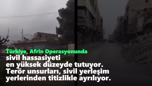 Türkiye, Afrin operasyonunda sivil hassasiyeti en yüksek düzeyde tutuyor. Terör unsurları sivil yerleşim yerlerinden titizlikle ayrılıyor.