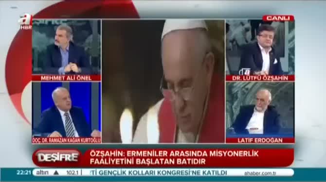 A Haber'de yayınlanan Deşifre programında Papa'nın soykırım hezeyanı masaya yatırıldı. Programa konuk olan Doç.Dr.Kağan Kurtoğlu 'Türkler soykırım yaptı demek terbiyesizliğin daniskasıdır' dedi