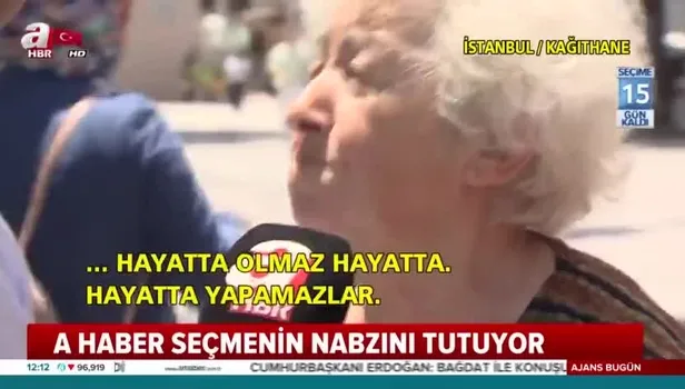 24 Haziran’a doğru ilerlerken vatandaş seçim havasına girmiş durumda. Kağıthane'de kendisine uzatılan mikrofona konuşan bir teyze de yaklaşan seçimler için düşüncesi sorulduğunda; Türkiye'nin sefalet içindeki eski günleri için "Neler çektik be yeter yeter!" diyerek isyan etti.