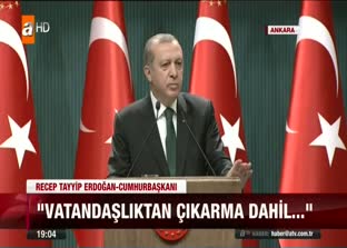 Cumhurbaşkanı Erdoğan, 5 Nisan Avukatlar Günü dolayısıyla dün Cumhurbaşkanlığı Külliyesi'nde bir grup avukatı kabul etti. Erdoğan, çarpıcı mesajlar verdi: Güvenlik güçlerimiz teröristlerle mücadelelerini başarıyla, fedakarlıkla ve hassasiyetle yürütüyorlar. Belki biz bir ölüyoruz ama en az 10, 20, 30 da onlardan öldürüyoruz. Terör örgütünün yandaşlarını devre dışı bırakmak için vatandaşlıktan çıkartmak dahil gereken tüm önlemleri almakta kararlı olmalıyız. Bunlar bizim vatandaşımız dahi olamazlar.