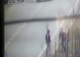 Şanlıurfa’da eyleme katılıp yol kapatmaya çalışan torununu fark eden dede kulağını çekip igaliyla döverek eve götürdü.