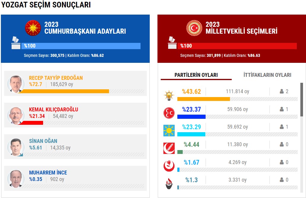 YOZGAT SEÇİM SONUÇLARI 2023! Yozgat Cumhurbaşkanlığı ve Milletvekili genel seçimleri oy oranları |Video