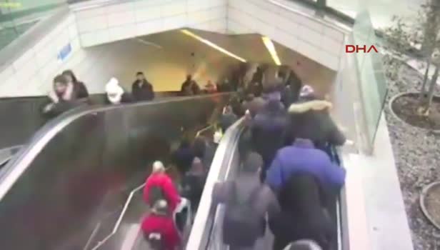 Maslak İTÜ Ayazağa Metro İstasyonu'nda 27 Şubat'ta meydana gelen ve bir kişinin yaralandığı yürüyen merdivenin çökme anı güvenlik kameralarına saniye saniye yansıdı. Görüntülerde çok sayıda kişinin kazadan kıl payı kurtulduğu görülüyor. İşte o dehşet anları...