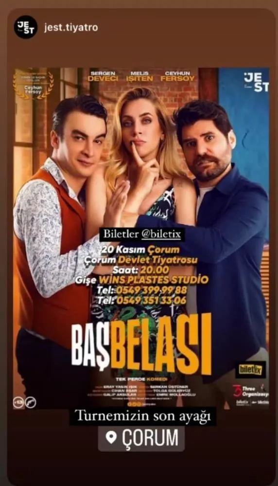 Paylaşımında "Başbelası" oyununun izleyiciden ilgi gördüğünü anlatan Fersoy'un, "Çorum'dayız, bugün de doluyuz. Üç bin küsur kişiye ulaştık. Ulaşmaya da devam edeceğiz. Tiyatro iyi ki varsın." ifadeleri dikkati çekti.