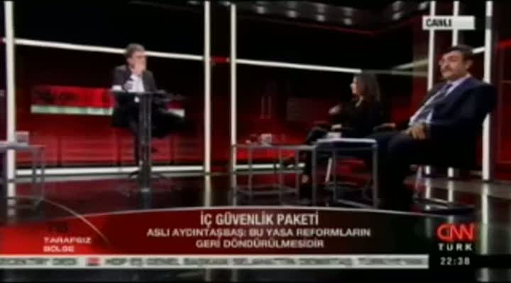 İç güvenlik yasasının tartışıldığı canlı yayında gazeteci Aslı Aydıntaşbaş'a inanan MHP'li vekil geri adım attı.