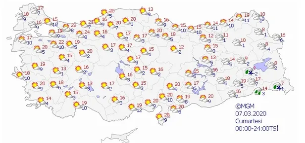 7 MART 2020 CUMARTESİ HAVA DURUMU
