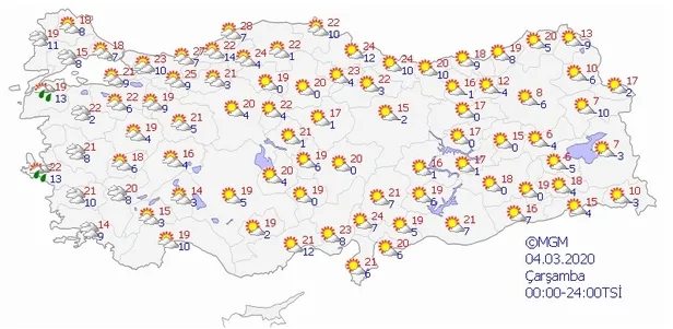 4 MART 2020 ÇARŞAMBA HAVA DURUMU