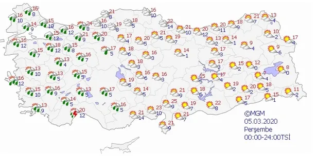 5 MART 2020 PERŞEMBE HAVA DURUMU