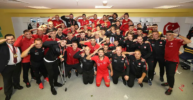 Paylaşımda, soyunma odasında A Milli Takım'ın teknik heyeti ve futbolcuların asker selamı verdiği fotoğrafa yer verildi.