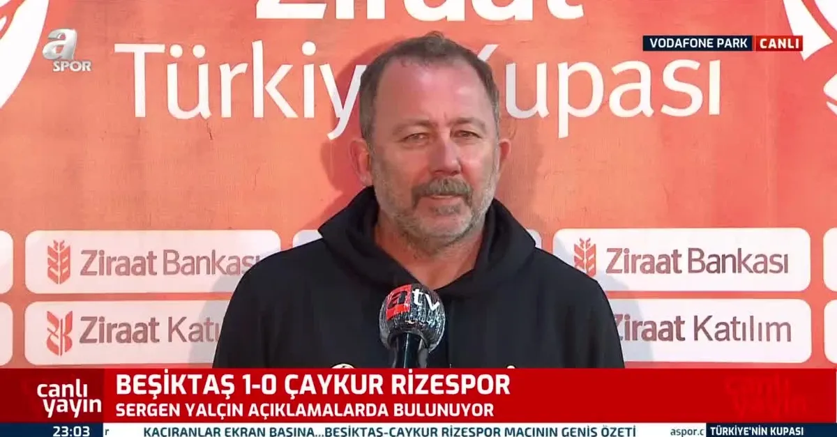 Son dakika haberi... Ziraat Türkiye Kupası son 16 turunda Çaykur Rizespor'u 1-0 mağlup eden Beşiktaş'ta teknik direktör Sergen Yalçın maçın ardından önemli açıklamalarda bulundu. Galatasaray ile hafta sonu oynanacak derbi maçın ligin gidişatını etkilemeyeceğini söyleyen Yalçın, "Derbi önemli, daha önce de derbi maçlar oynadık. Ligin bitimine uzun bir zaman var. Derbinin sonucunun ligin gidişatını etkileyeceğini düşünmüyorum. Seyir zevki veren bir oyun oynanmasına ülke futbolunun ihtiyacı olduğunu düşünüyorum." ifadelerini kullandı.