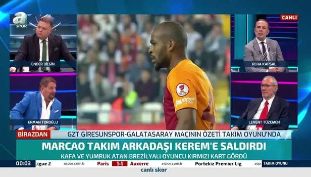 Süper Lig'in ilk haftasında Galatasaray, Giresuspor'u deplasmanda 2-0 yendiği maçta Marcao'nun Kerem Aktürkoğlu'na kafa ve yumruk atmasıyla ilgili konuşan usta yorumcu Erman Toroğlu, A Spor'da yayınlanan Takım Oyunu programı'nda Fatih Terim'e sert eleştiride bulundu. Toroğlu, "Fatih Kardeşim, Ümit Milli Takımı'yla özel maç yaparken aynı haltı yapan Marcao'yu, rakip futbolcuyu döverken hakemi de ayarlayıp attırmazsan senin başına bunlar gelir. Marcao sana az bile yapıyor" ifadelerini kullandı.