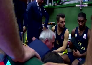Fenerbahçe'nin basketbol takımının koçu Zeljko Obradovic, Banvit-Fenerbahçe Doğuş arasında oynanan müsabakada aldığı bir molada sinirlendiği oyuncusu Melih Mahmutoğlu'nu tokatladı. (Görüntüler BeinSports'tan alınmıştır)