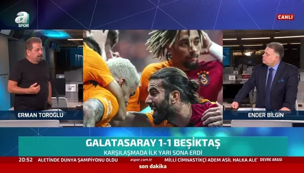 Spor Toto Süper Lig'in 13. haftasında Galatasaray ile Beşiktaş, Nef Stadyumu'nda kozlarını paylaştı. A Spor yorumcusu Erman Toroğlu, mücadelenin ilk yarısını yorumladı. Toroğlu, "Galatasaray'ın attığı gol teknik olarak zor ve iyi bir gol. Beşiktaş'ta Cenk gol attı ama Galatasaray'ın bu golü yememesi lazım. Büyük takım öyle gol yemez." ifadelerini kullandı. İşte o sözler...