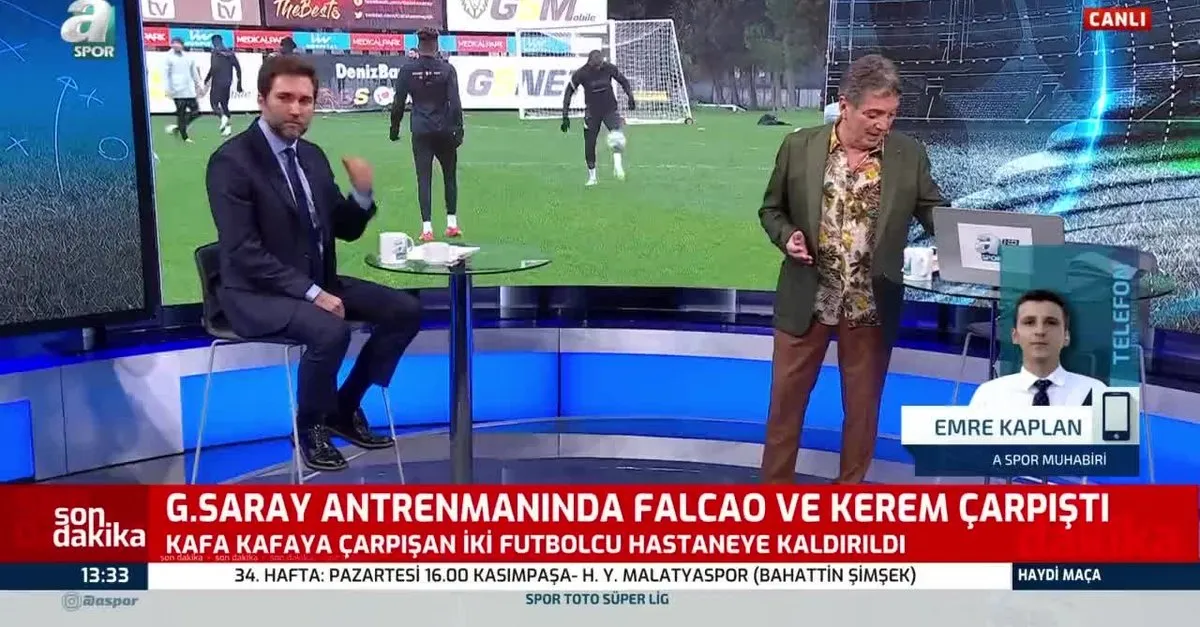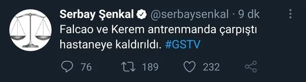 Galatasaray antrenmanında üzücü bir olay yaşandı. Galatasaray'ın Kolombiyalı forveti Radamel Falcao ile genç yıldız Kerem Aktürkoğlu kafa kafaya çarpıştı. İki isim de apar topar hastaneye kaldırıldı. Galatasaray idmanında yaşanan üzücü olayın ardından GS TV spikeri Serbay Şenkal da iki oyuncunun da hastaneye kaldırıldığını açıkladı.