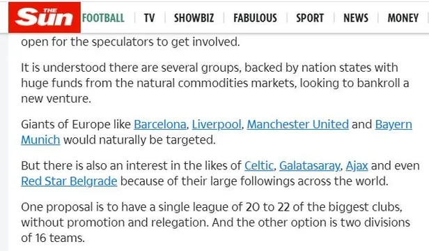 Öte yandan İngiliz The Sun Gazetesi, Avrupa Süper Ligi'nin büyük hayran kitlesine sahip olan Galatasaray ve Celtic gibi kulüplerle de ilgilendiğini yazdı.