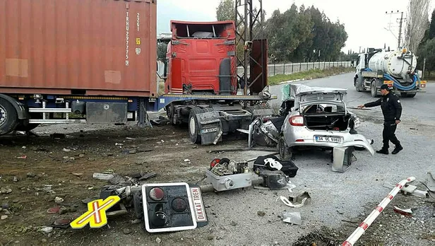 Kaza, saat 13.30 sıralarında, Söke- Milas karayolunda meydana geldi. Aydın'dan Didim yönüne giden Selahattin Gerçek, yönetimindeki 35 AU 8245 plakalı TIR'ın direksiyon kontrolünü kaybetti. Refüje çarpan TIR, karşı şeride geçerek Ahmet Anıl Şahin yönetimindeki 34 UC 6982 plakalı otomobille çarpıştı. Kazada her iki aracın sürücüsü ile otomobildeki Kıvanç Someran ve ABD uyruklu Karya Wilson, bu sırada karayolunda çalışma yapan işçi Hasan Aşıcı yaralandı.