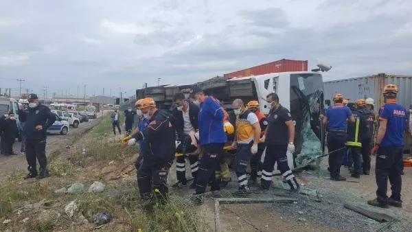 Bursa Gemlik'te işçi servisi devrildi! Kazada 1 kişi öldü 20 kişi yaralandı