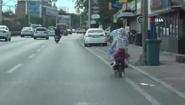 Bursa'da ikisi çocuk üç kişinin bindiği elektrikli motosikleti görenlerin yüreği ağzına geldi. Cep telefonu kamerasına yansıyan görüntüler Bursa'nun en işlek caddesinde yaşandı.
