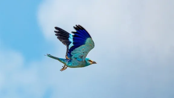 Parlak mavi, turkuaz ve kahverengi tonlara sahip olan gökkuzgun, Türkiye'de genellikle yaz aylarında görülüyor. Göçmen kuşlar arasında yer alan bu tür, açık alanlar, tarım arazileri ve seyrek ağaçlık bölgelerde yaşamayı tercih ediyor. Özellikle böceklerle beslenerek doğal dengeye katkı sağlayan gökkuzgun, doğada çekimler gerçekleştiren fotoğraf sanatçısı Ferit Gölgül tarafından görüntülendi. Gökkuzgun, göz alıcı renkleriyle dikkat çekti.