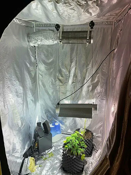 Polis, odada saksı içinde Hint keneviri, sıvı gübre, uyuşturucu üretim düzeneği, buhar makinası, termometre, havalandırma borusu, ısı ve ışıklandırma cihazı ile bir çözeltinin asitlik ve bazlık derecesini ölçen alet (PH) buldu.