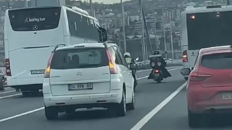 Dörtlüleri yanar vaziyette yavaşça ilerleyen sol şeritteki otobüs ile sağ şeritteki metrobüsün ortasına geçen iki motosikletli, herhangi bir olumsuzluk yaşamadan köprüyü geçmeyi başardı. Bu sırada orta şeritte motosikletlilerin arkasındaki bir otomobilin sürücüsü de dörtlülerini yakarak arkadan gelen araçlara engel oldu. O anlar, cep telefonu kamerasına yansıdı.