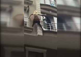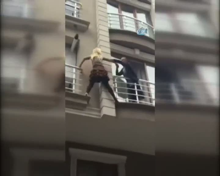 İstanbul Yenibosna'da kocasından şiddet gördüğünü iddia eden kadın balkondan sarkarak yardım istedi. Genç kadın yan dairede oturan komşusunun yardımıyla evinin balkondan diğer balkona geçerken, yaşanan anlar saniye saniye cep telefonu kamerasıyla kaydedildi.
