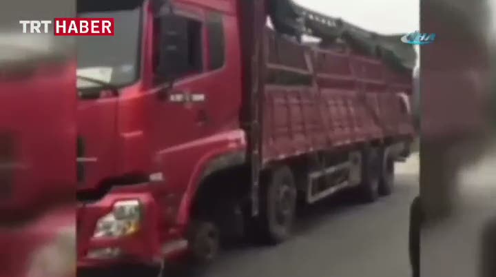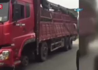 Karayolunda ön tekerlekleri olmadan seyreden kamyon sürücüsü polisi şaşkına çevirdi.