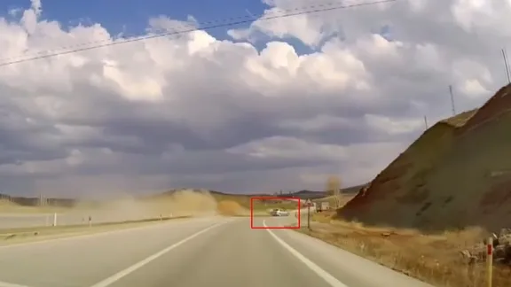 Sivas-Erzincan karayolu'nun, Zara ilçesi Tödürge gölü geçişinde virajı fark edemeyen sürücü, aracıyla şarampole düştü. Kaza anı arkadan gelen aracın kamerasına yansıdı. Kazada 3 kişi hafif yaralandı.
