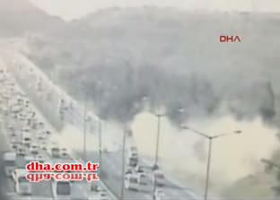 Kaza saat 16.00 sıralarında meydana geldi. Güvenlik kamerasına da yansıyan görüntülerde kazaya "makas" atan bir araç neden oldu. Aniden şerit değiştiren aracın sağ şeritte ilerleyen araca çarpmasıyla iki araç kontrolden çıktı. Savrulan araçlardan biri bariyerlere çarptı. Diğer araç ise şarampole yuvarlandı