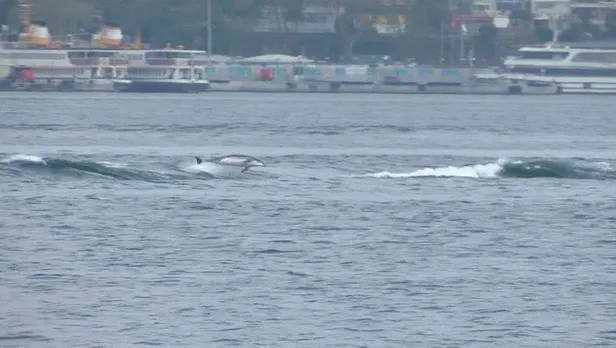 Üsküdar'da yunusların dalgalarla dansı görüntülendi | Video