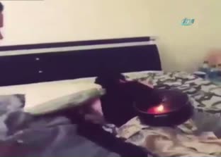 İzleyeceğiniz görüntüler, bildiğimiz eşek şakalarına taş çıkartan cinsten.. Önce içi patlayıcılar ve havai fişeklerle dolu tencereyi, uyuyan arkadaşının kalçasının üzerine bırakan genç, ardından da o patlayıcıları ateşledi.