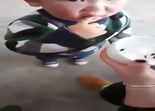 Endonezya'da çekildiği tahmin edilen görüntülerde bir anne çocuğuna canlı kurbağa larvası yediriyor.