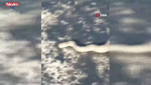 Elazığ’ın Baskil ilçesine bağlı Çiğdemlik köy yolunda seyreden bir sürücü, karayoluna inen yaklaşık 1,5 metrelik dev engerek yılanıyla karşılaştı. Aracını durduran sürücü, ender rastlanan yılanı cep telefonu kamerasıyla görüntüledi.