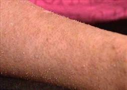 Kaşıntılarla birlikte vücudunun her yerinde siyah şişlikler çıkan 28 yaşındaki Isom bir süre sonra kıl keselerinden tüy yerine tırnak çıktığını fark etti.