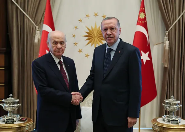 Başkan Recep Tayyip Erdoğan, Milletçi Hareket Partisi Genel Başkanı Devlet Bahçeli'yi ağırladı. Cumhur İttifakı'nın yeni sistem ile ilgili fikir alışverişinde bulunduğu öğrenildi.