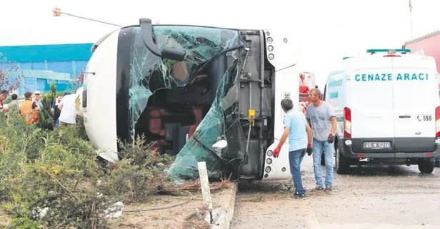Akhisar-Manisa devlet karayolu 5. kilometresi Organize Sanayi Bölgesi kavşağında dün korkunç bir kaza meydana geldi. Kocaeli- Denizli seferini yapan şehirler arası yolcu otobüsü sağanak nedeniyle kayganlaşan yolda kontrolden çıktı. Ters dönüp yan yattı. Otobüsteki yolculara ilk müdahaleyi çevredeki vatandaşlar yaptı. Durumun bildirilmesi üzerine olay yerine çok sayıda polis ve sağlık ekibi sevk edildi. İlk müdahalenin ardından yaralılar hastanelere kaldırıldı. Kazada otobüste bulunan Serpil Kuran (45)hayatını kaybetti. 41 kişi de yaralandı. Kuran'ın cenazesi, morga kaldırıldı.