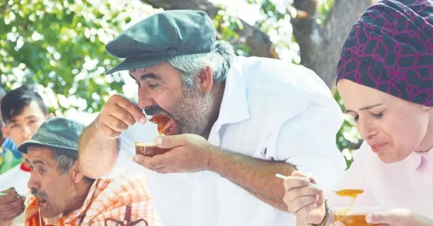50 yaşındaki Ayhan Azak, bal yeme yarışmasına katıldı. 2 dakikada 1 kilo 750 gram bal yiyerek rekor kırdı
