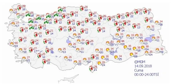Meteoroloji Genel Müdürlüğü'nün dün yaptığı son dakika uyarılarının ardından öğle saatlerinde başlayan gök gürültülü sağanak yağış, gece boyu devam etti. İstanbul'da birçok yeri su basarken, vatandaşlar yağmurun daha ne kadar devam edeceğini merak etmeye başladı. İstanbul'da bugün hava nasıl? İstanbul'da yağış sürecek mi? gibi aramalar yapan vatandaşlar için 14 Eylül 2018 Cuma hava durumu tahminlerini derledik.