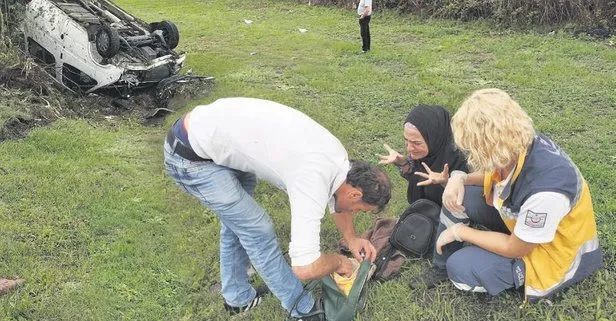 Samsun’da minibüs sürücüsü, direksiyon başında eşiyle tartıştı. Araç şarampole yuvarlandı. Kazada 5 kişi yaralandı