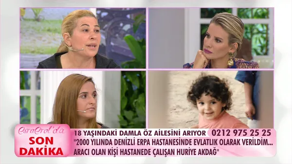 Damla "Annem bana evlatlık olduğumu söylediğinde inanamadım, çünkü hiçbir zaman bu farkı bana hissettirmemişti. Beni 2000 yılında Denizli Erpa Hastanesi'nde çalışan bir görevli aracılığıyla evlatlık almışlardı. Bunları duyunca bir aile neden daha ufacık bir bebeği istemez diye düşünmeden edemedim. O yüzden biyolojik anne babamı değil de kardeşlerim varsa ve hayattalarsa onları görmek, bulmak istiyorum" dedi. Damla'yı büyüten annesi Ayperi Hanım Denizli'deki hastanede tüp bebek için tedavi görüyordum. Ama olumsuz sonuç alıyorduk. Orada çalışan bir temizlik görevlisi vardı. Sürekli gidip geldiğimiz için aramızda bir sohbet oluşmuştu. Ona burada doğum yapıp çocuğu istemeyen aile olursa biz evlatlık almak isteriz demiştik. Onlar da bir süre sonra bize Damla'yı getirdiler. Damla'yı öz anne ve babasından evlatlık aldık dedi.
