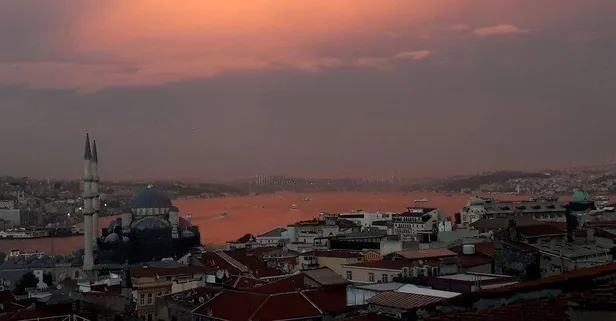 İstanbul'da gün batımı, benzerine az rastlanan görsel bir şölene dönüştü. Süleymaniye Tepesi'nden batan güneş, İstanbul semalarını ve Boğaz'ı kızıla boyadı.