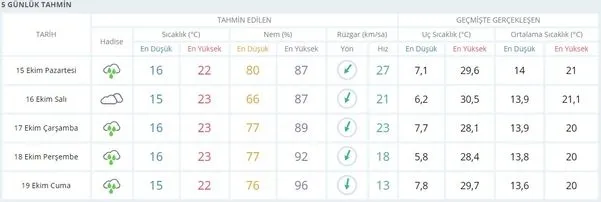 Peki; bugün İstanbul hava durumu nasıl? Önümüzdeki günlerde İstanbul hava durumu nasıl olacak? İşte, 15 Ekim İstanbul hava durumu ve ve Meteoroloji Genel Müdürlüğü tarafından yayınlanan 5 günlük hava tahmin raporu...
