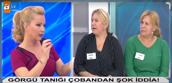 Müge Anlı son bölümde yaşananlar ortalığı iyice gerdi. Atv'nin en çok takip edilen programı Müge Anlı ile Tatlı Sert'te bugün kayıp Murat Tekin'in eşi hakkında ilginç gelişmeler yaşandı. Müge Anlı canlı yayına Sakine Tekin ile ilgili şok iddialarda bulunan görgü tanığı Naci Uçar bağlandı. Çoban Naci Uçar Murat Tekin'i tanımadığını ancak 2 kez gördüğünü dile getirdi. Sakine Hanımı ise annesi Serpil Hanım ile birlikte koyunlarını otlattığı yerde gördüğünü dile getirdi.